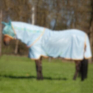 Fluedækken i strikket polyesternet. Krydsgjorde, dobbelt bringespænde og halerem. Komplet med aftageligt halsdækken. Stor halebeskytter og med Horsewares patenterede benskæring.