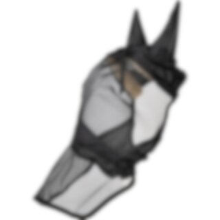 Heldækkende fluemaske, der beskytter hestens følsomme øjne og ører og giver beskyttelse over næsen. Hul til pandelokken. Blødt, åndbart stof.