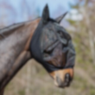Fluemaske i lycra med finmasket net over øjne og ører. Blød og behagelig for at minimere risikoen for slidmærker.