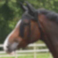 Beskytter både øjne og ører. Kan bruges uden grime. Justeres med velcro under kæben. Elastikbånd i den ene side. S = Pony, L = Full.