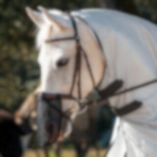 Mulenæt, som beskytter mule og næsebor mod insekter og delvis også mod sol. Sættes fast i grime eller trense med fire velcrobånd.
