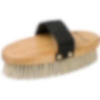 Kardesk med ryg i slidstærkt lakeret træ og rem i polyesterbånd. Bløde og tætte børster i PP, renser i dybden og giver hud og hår en skøn massage. Husk at rense dine børster regelmæssigt med mild hesteshampoo blandet med vand. Skyl godt og lad dem tørre,