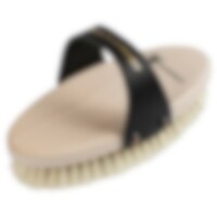 Strigle fremstillet i Tyskland. Grålaseret træryg. Læderrem og gedehår, som er naturligt antistatisk. Gedehårsbørste som sidste finish eller som ansigtsbørste. Meget blød og behagelig, selv for den mest følsomme hest. Giver et resultat med højglans. Husk