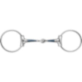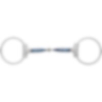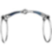 Todelt trensebid med munddel i blå sweet iron. Rustfrie ringe. Opbygget på siderne ved ringene for at hindre niv og gnavsår.
