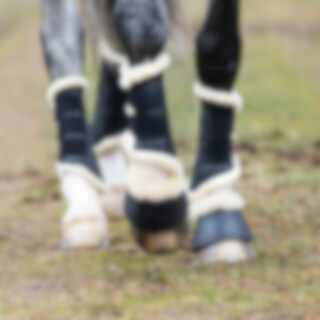 Gamacher med blødt teddyfor og yderside i slidstærkt kunststof. Elastisk velcrolukning. Passer både foran og bagpå.