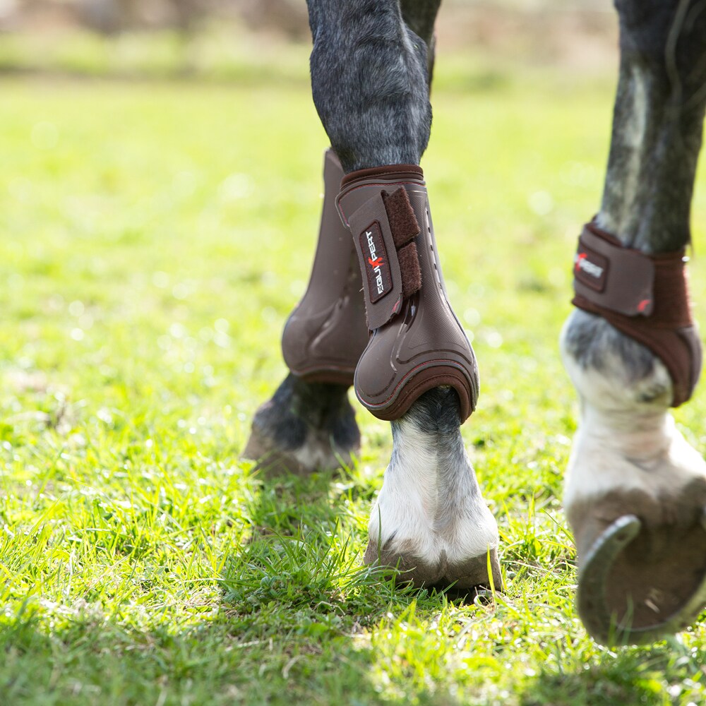 Gamacher i slagfast plastik med inderside i perforeret neopren, som slipper luft og varme igennem. Ventilationshuller bag på skålen lader overskudsvarme slippe ud. Formskåret skål med udskæring, som lader skålen forme sig bedre om koden. Nedskåren bagside sikrer stor bevægelsesfrihed. Lukkes med elastik og velcro.