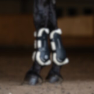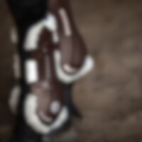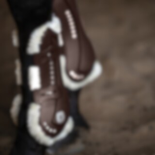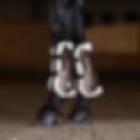 Gamacher i let slagfast TPU-plast. Inderside i imiteret lammeskind af polyester med høj densitet, som hjælper med at modvirke slidmærker og opfange stød. Ventilationshuller hjælper med at slippe overskudsvarme ud, så benene kan beholde en behagelig temperatur. Lukkes med elastisk hurtiglukning. Lette at vaske ved 30 grader. Brug vaskepose. Kan kombineres med stryglapper art. 610205.