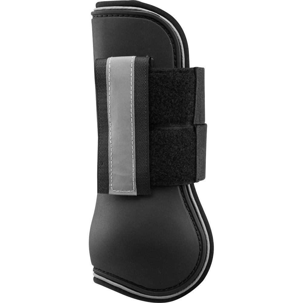 Gamacher med skål i kraftig plast, som beskytter mod slag. Foret med neopren for høj komfort. Lukkes med elastisk velcro. Refleksdetalje på lukningen og rundt om skålen.
