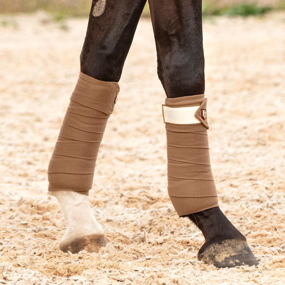 Fleecebandager med satinbånd og Trinity meltallogo. Leveres i praktisk pose med løbegang. Længde: 3 m. Bredde: 10 cm.