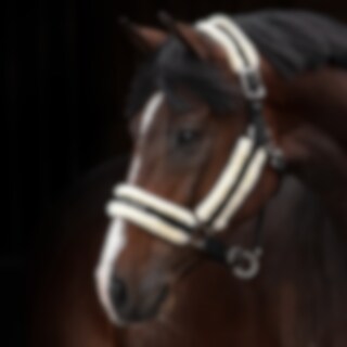 Grime med blød minkfleece i nakke, næse og på sidestykker. Spænder i antiksølv.