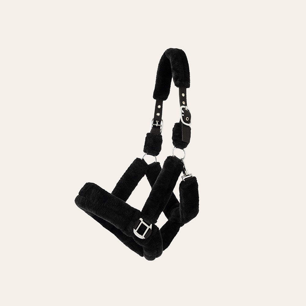 Grime helt betrukket med minkfleece. Spænder på begge sider af nakken.