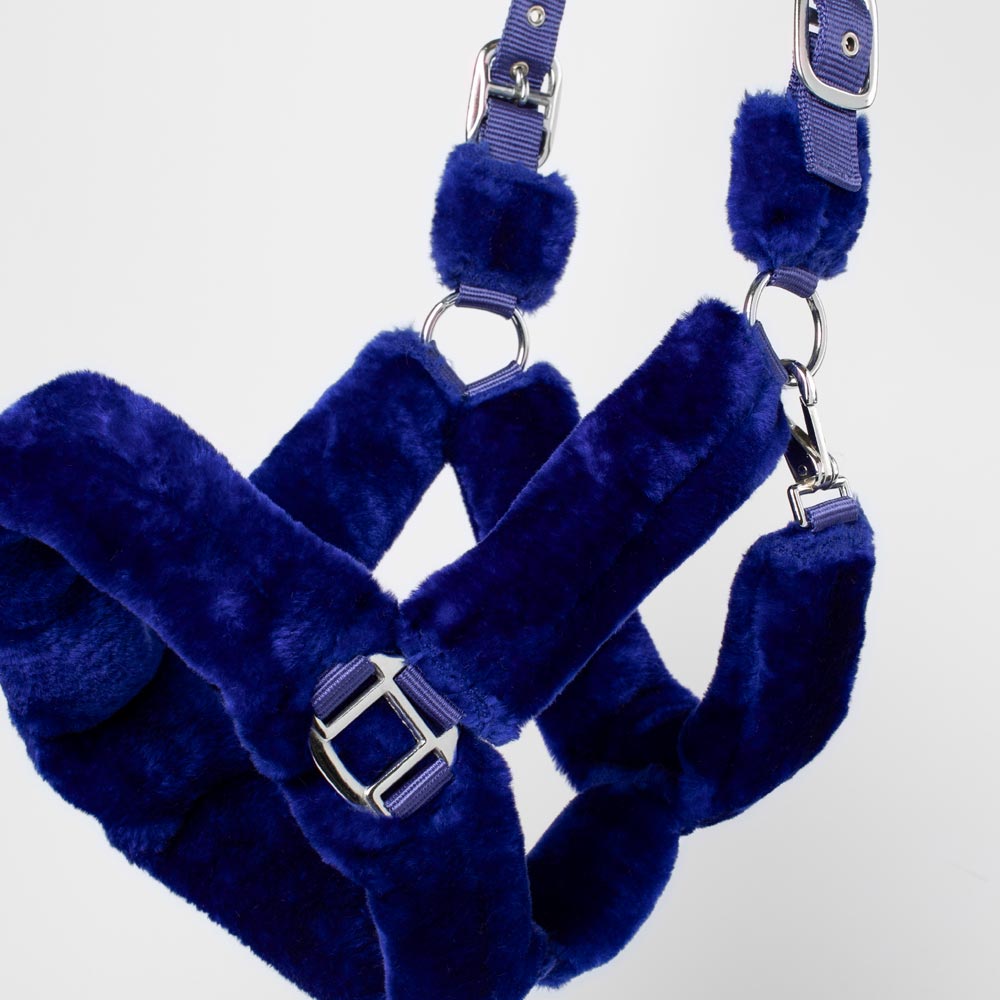 Grime helt betrukket med minkfleece. Spænder på begge sider af nakken.