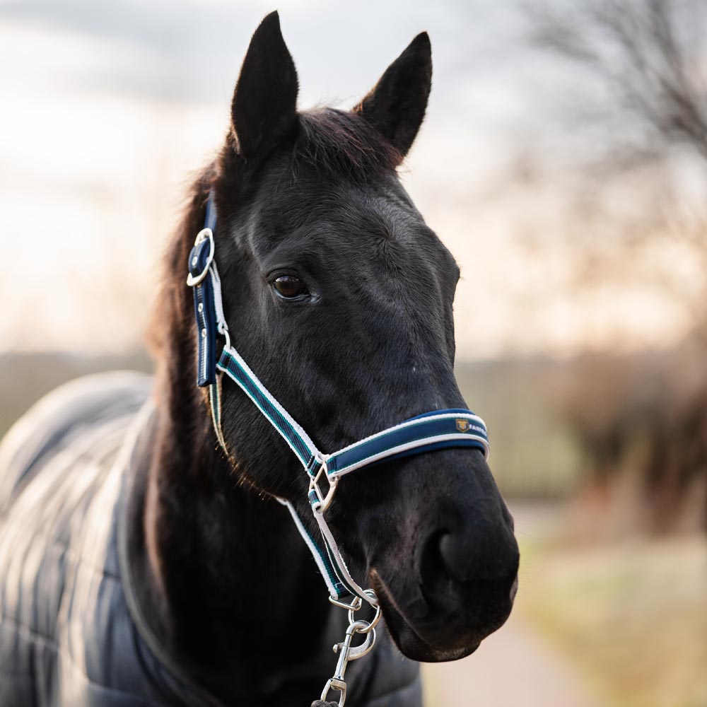 Grime med bredt, formet nakkestykke. Neoprenfor ved næse og nakke. Justerbar på begge sider af nakken og under næsen.