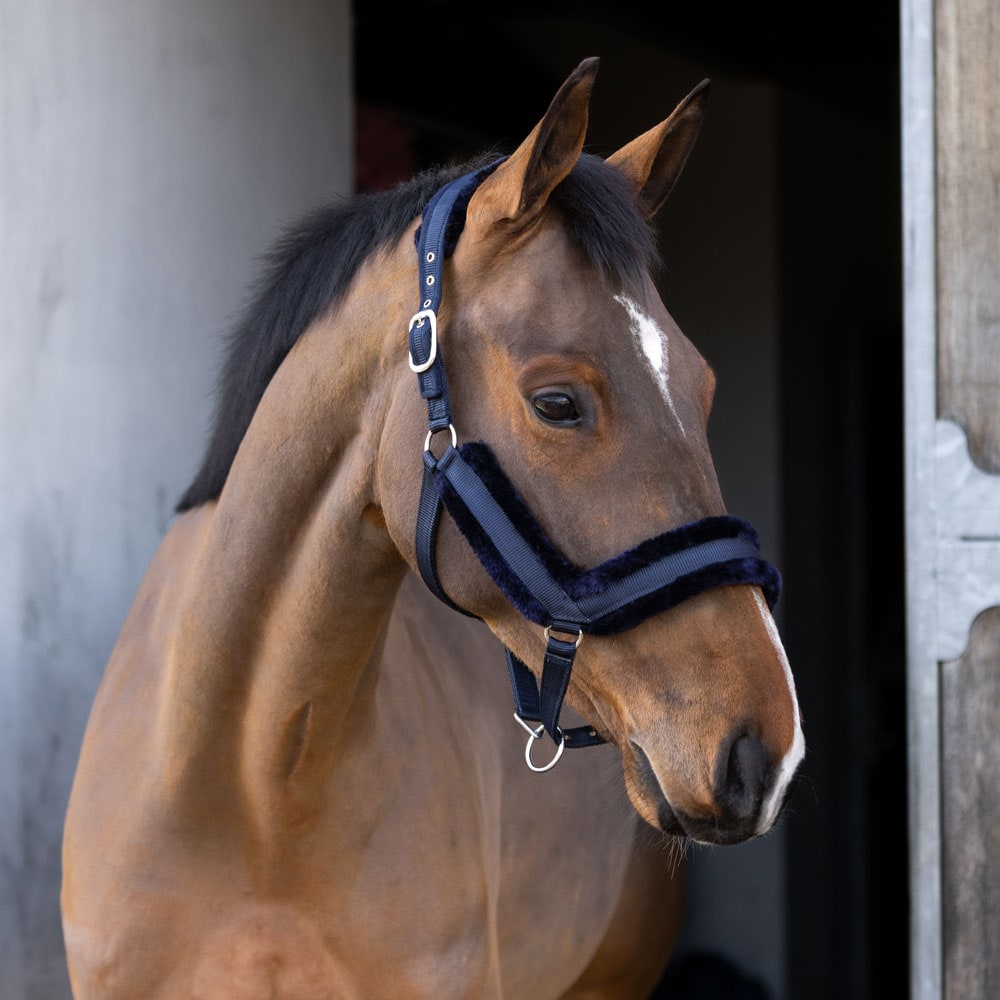 Grime foret med minkfleece ved næse, nakke og sidestykker. Bredt formet nakkestykke, drejet næsedel, justerbar på begge sider af nakken og under næsen.