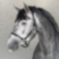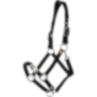 Grime med bredt nakkestykke i blødt og foret læder. Spænde på næsen, som kan åbnes, når hesten trænes. Justerbar under næsen.