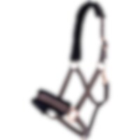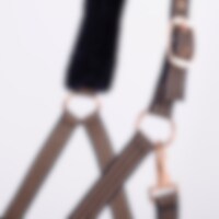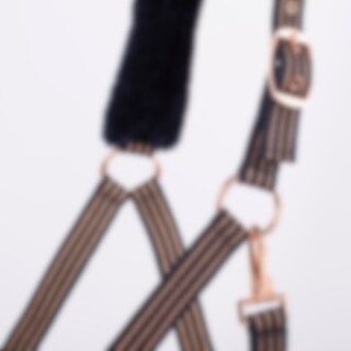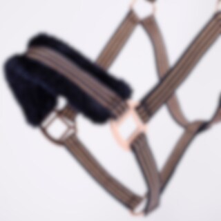 Grime med blød minkfleece ved næse og hals. Spænder og kontrastsyninger i rosaguld.