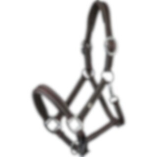 Lædergrime i blødt, olieret læder. Blød polstring i næse og nakke. Spænder på begge sider af nakken. Justerbar under næsen. Velegnet til halvblodsføl fra ca. 6 måneder gammel.