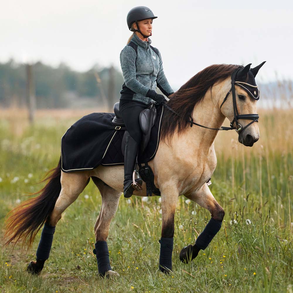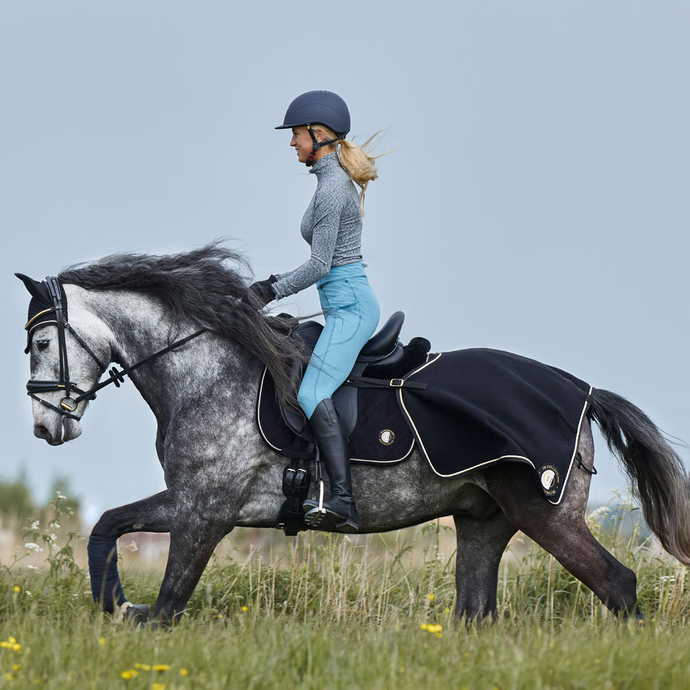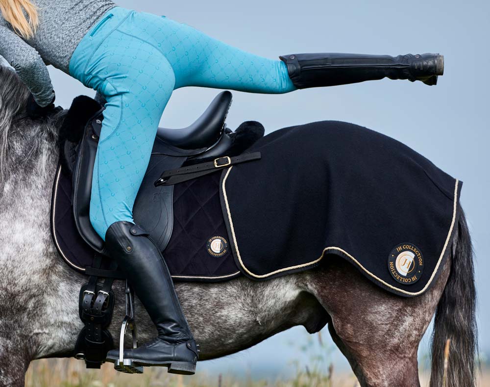 Lændedækken i uldblanding. Dekorativ JH-badge og stribede JH-gjorde.