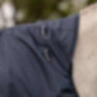 Regndækken i genbrugsmaterialer. 900D polyester ripstop yderstof vandtæt 5000mm, hjælper med at holde din hest tør selv når det er rigtig dårligt vejr, overfladebehandlet med PFAS fri Rudolf Eco Bionic gør overfladen mere smuds- og vandafvisende. 3000mvp åndedrætsfunktionen forhindrer kondensdannelse. Indvendig foring i glat 210D genanvendt polyester, der modvirker gnidninger og forhindrer snavs og hår i at sætte sig fast. Foret med 50g genanvendt polyestervat, der hjælper din hest med at holde varmen. Lukkes med udskiftelige lynlåse i skuldrene, høje bringelæg med elastik for god bevægelsesfrihed, halvhøj hals med ekstra polstring for at løfte dækkenet fra den følsomme manke og modvirke tryk og slidmærker. Elastik i halsudskæringen for at lukke tæt om halsen, forhindre lækage og lade hesten græsse uhindret. Refleksdetaljer for øget synlighed, stort haledæksel for at beskytte mod regn og vind. Lukning til halsdækken og liner, så du kan bruge dit dækken hele året rundt.