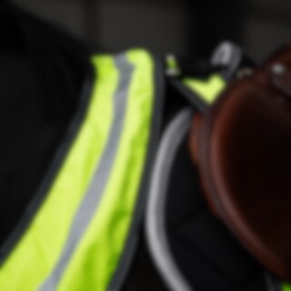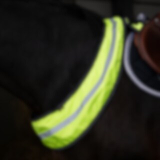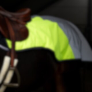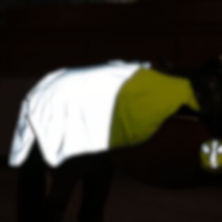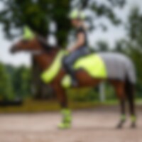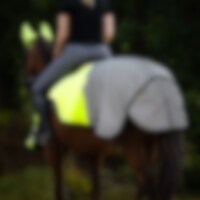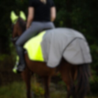 Skridtdækken i reflekterende og flourescerende materiale. Holder hesten varm over kryds og lænd. Stor halebeskytter helt i refleks. Aftageligt fortøj.