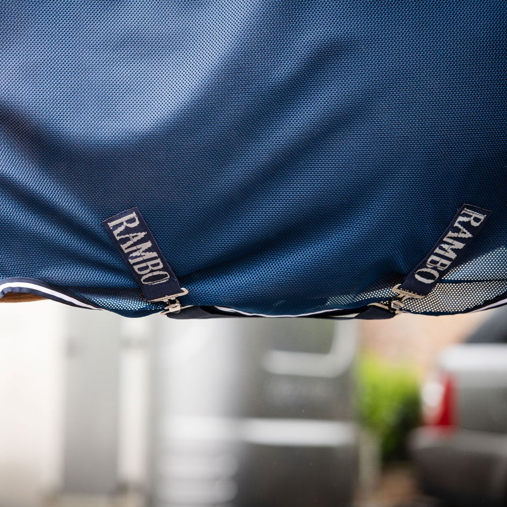 Nyt innovativt Rambo-dækken, særligt udviklet til at tilgodese hestens behov under transport. Langt, quiltet rygdel, som afsluttes i en stor halebeskytter, som hjælper med at holde halen fin og forhindre slidmærker. Ryggen er i let polstret, blød polar-fl