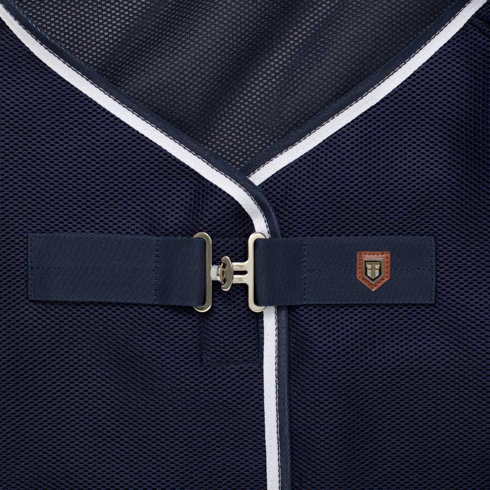 Køletæppe med ryg i polyester 3D-mesh, der danner en luftspalte og hjælper med at transportere fugt væk fra hesten. Nederdel i tynd cool-max med trykt motiv. Giver hesten mulighed for at køle ned efter arbejde, samtidig med at den hjælper med at tørre sve