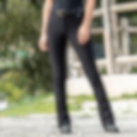 Vævet jodhpurridebuks i strækbart funktionsmateriale. Forstærkning fra indersiden på knæ og til ankel. To lynlåslommer bagpå. Lynlås med kile ved ankel. Indvendig benlængde ca. 81 cm i damestørrelse.