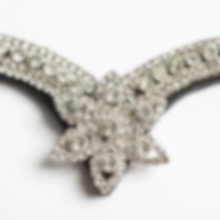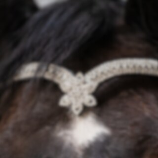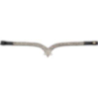 V-formet pandebånd i læder med hvide sten og et dekorativt stjernemønster på midten foran.