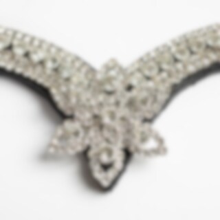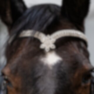 V-formet pandebånd i læder med hvide sten og et dekorativt stjernemønster på midten foran.