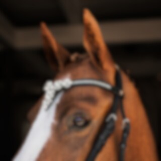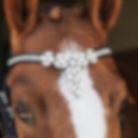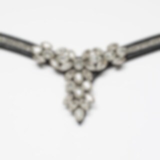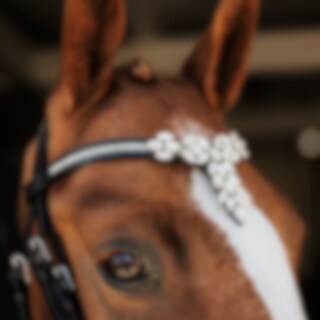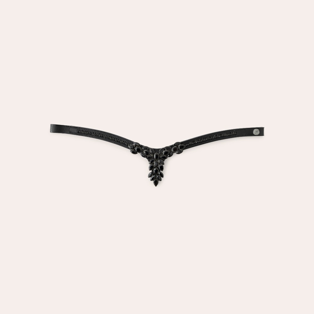 V-formet pandebånd med små hvide sten og stor dekoration i midten.