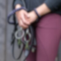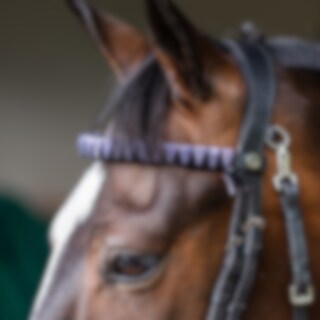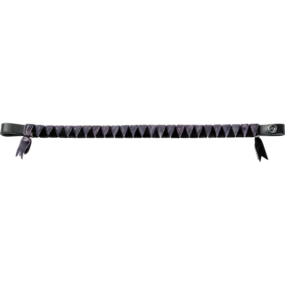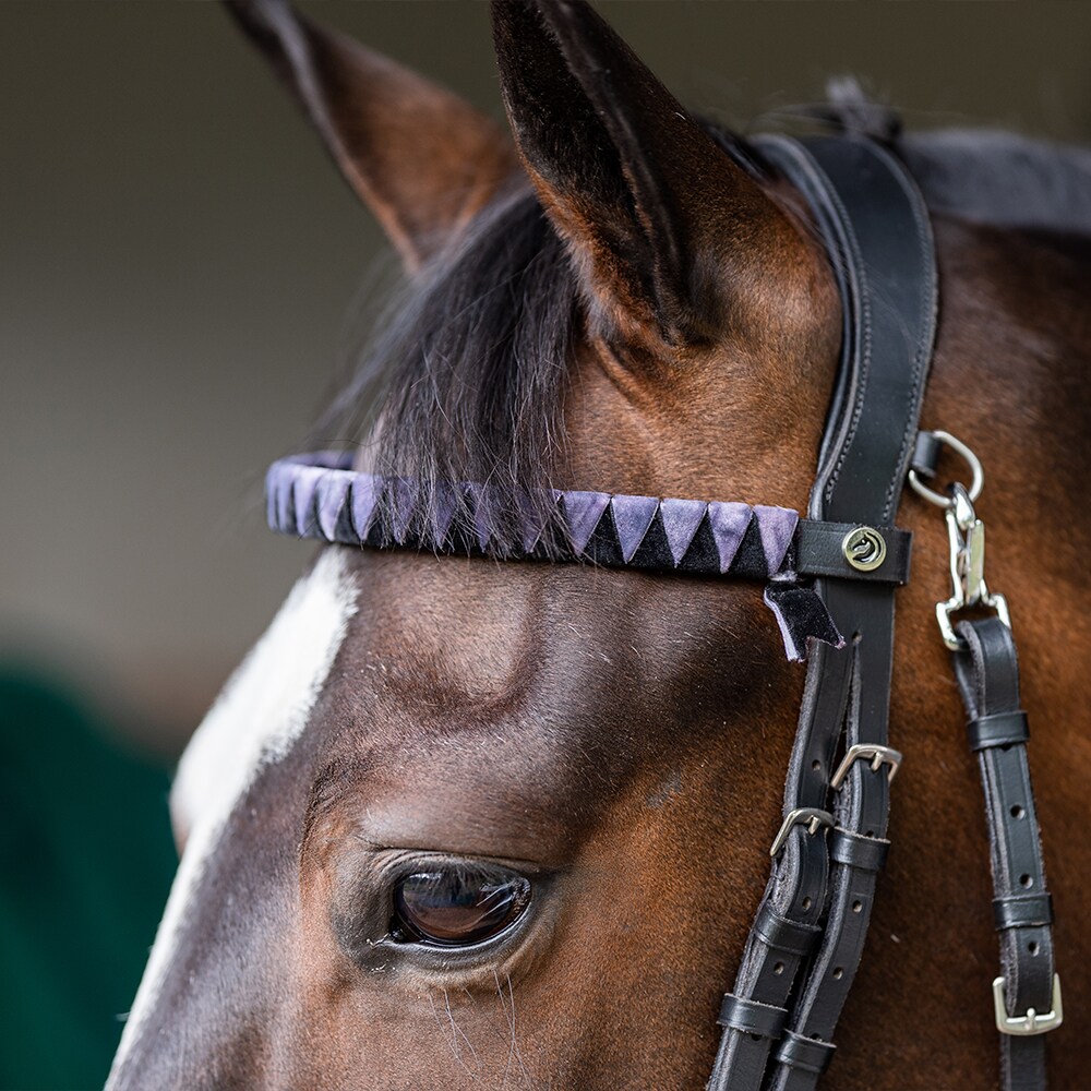 Klassisk, lige pandebånd i læder udsmykket med flettede velourbånd.