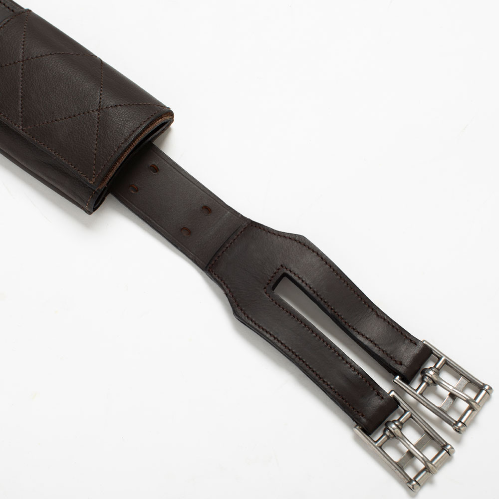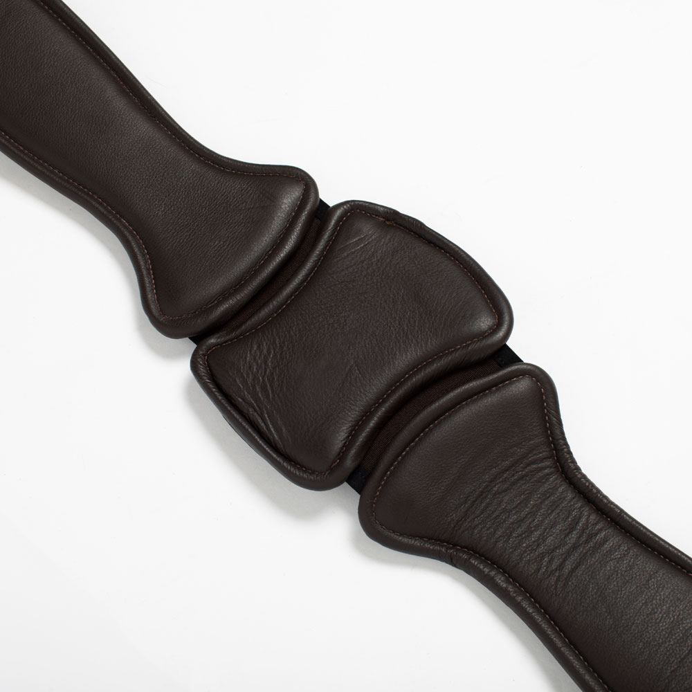 Lædergjord, som kan justeres i begge sider, så den kan justeres mellem 115-145 cm. Trykaflastende plade på midten med elastikpaneler og hurtiglukning. Blødt for.