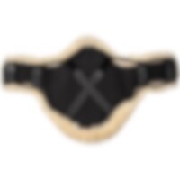 Gjordbeskyttelse til springplade i lammeskind med quiltet bomuldsfor. Lukkes med velcro.