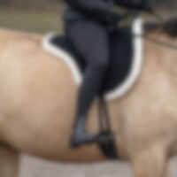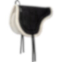 Pad i ruskindslignende kunststof, som bruges i stedet for sadel. Teddy på undersiden og med skumfyld gør det behageligt for både hest og rytter. Håndtag foran og med gjordstropper.