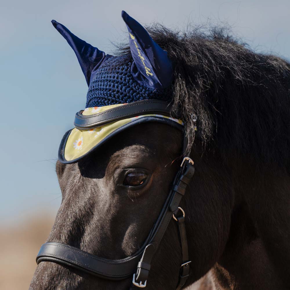 Hæklet bomuldshue med elastiske ører. Fairfield-logo på det ene øre. Matcher underlaget i samme serie.