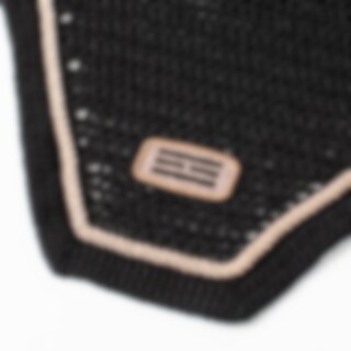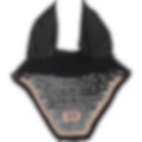 Hæklet bomuldshut med lige afslutning, ører i højelastisk lycra for en god pasform, fremragende til at beskytte hestens følsomme ører mod insekter under arbejdet - kan suppleres med støjdæmpende indlæg, hvis hesten er stresset/urolig. Dekoreret med silkep