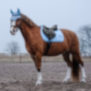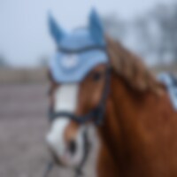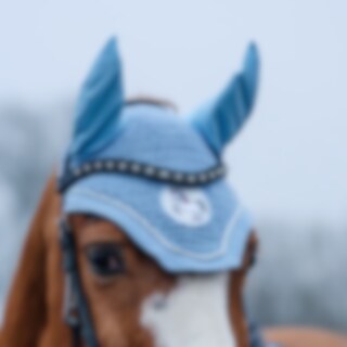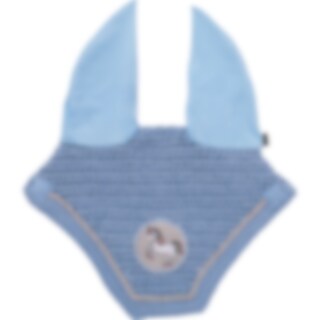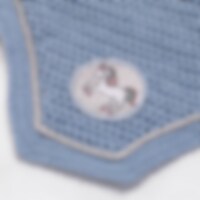 Hæklet bomuldshætte med lycra ører. Dekoreret med lurexpipe og skinnende enhjørningebroderi på glitterbaggrund.