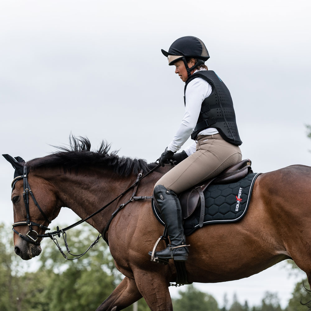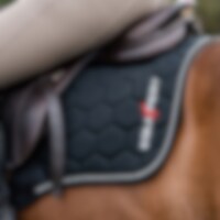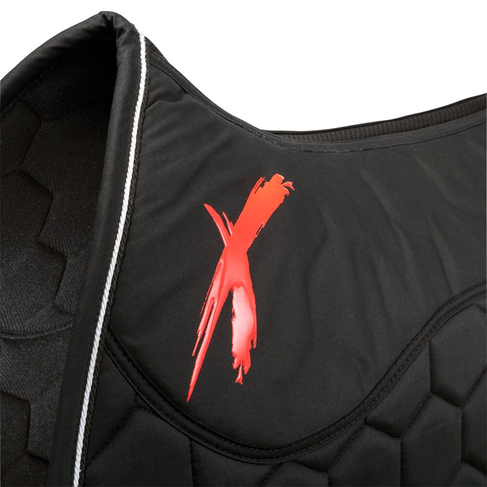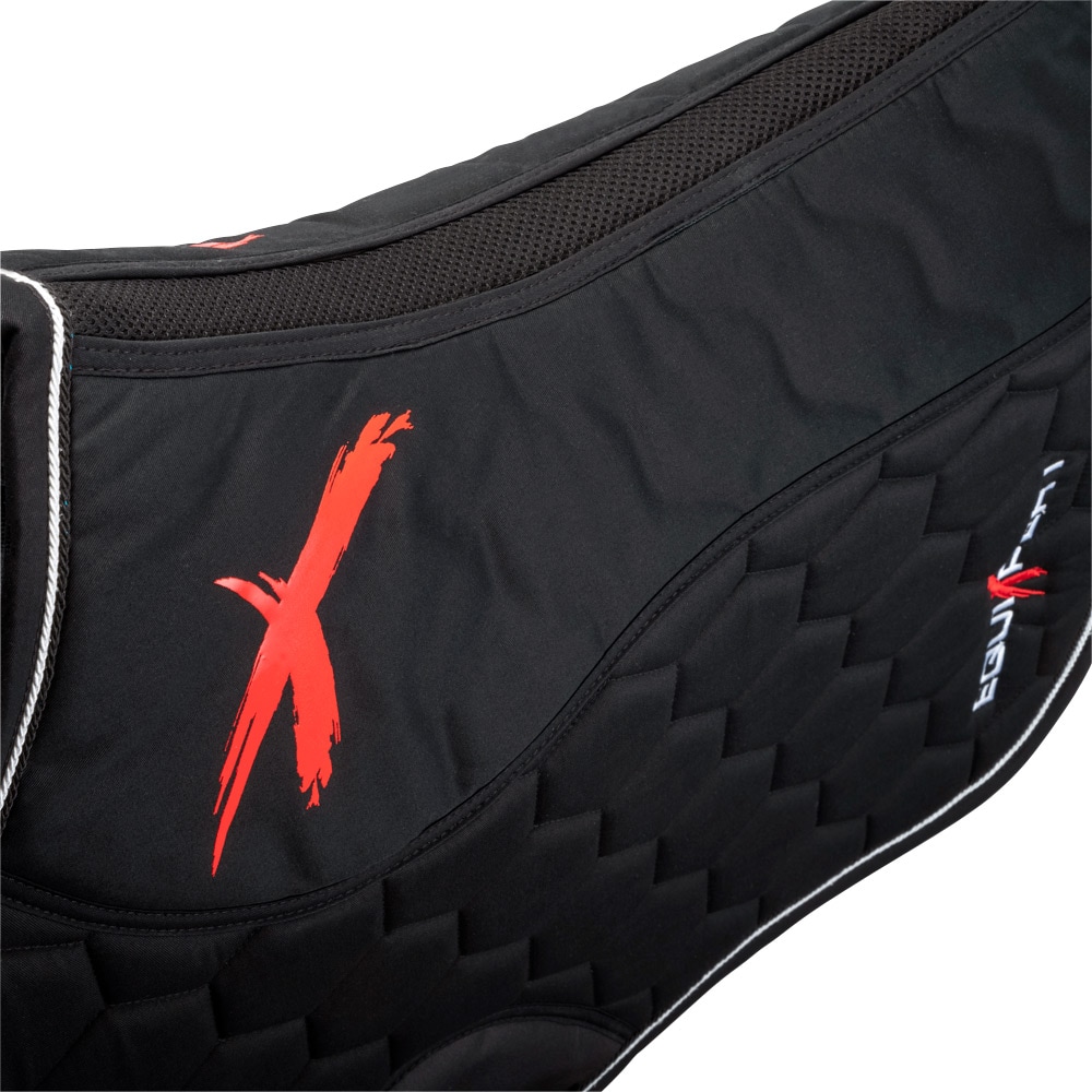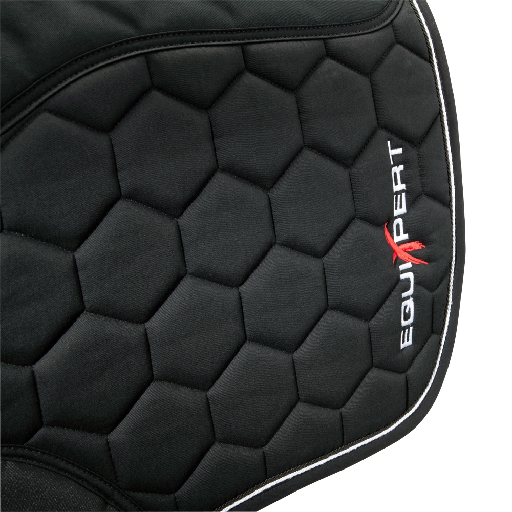 Quiltet bomuldsunderlag med inderside i Coolmax funktionsmateriale, som hjælper med at transportere fugt væk. Mesh-panel i mesh langs med rygraden for at give yderligere ventilation. Stabilt kombinationsfyld i 700 g polyesterfilt og 8 mm skumgummi. Silikonetryk ved manken som hjælper med at holde sadlen på plads. Ekstra forstærkning ved sadelgjorden for at reducere risikoen for slitage. Kantbånd samt dobbelte silkepipes. Broderet EquiXpert-logo.