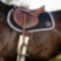 Schabrak med klassisk ternet quilt i glat og smidig nylonspandex, der giver en pletafvisende overflade. Holder farve og form vask efter vask. Kraftig kombinationspolstring i 500 g polyesterfyld og 0,8 mm skum virker støddæmpende og hjælper schabrakket med at holde formen. En vaffelvævet bomuldsforing skaber en luftspalte, så sveden tørrer hurtigere. Bredt kantbånd i mat satin. JH-logo. Ikke egnet til broderi.