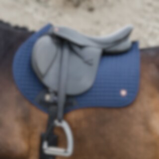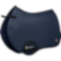 Quiltet bomuldsunderlag med inderside i kølende Coolmax funktionsmateriale, som leder fugt væk. Panel i 3D mesh langs med rygraden for at give yderligere ventilation. Kort strop med elastik til at sætte fast i sadlens D-ring, så den passer til de fleste modeller. Ekstra forstærkning ved sadelgjorden for at reducere risikoen for slitage. Trinity-broderi på gjordforstærkningen samt Trinity metallogo på venstre side.