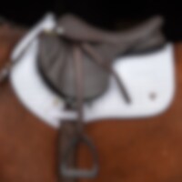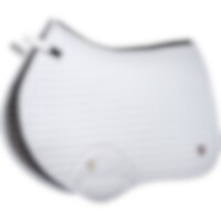Quiltet bomuldsunderlag med inderside i kølende Coolmax funktionsmateriale, som leder fugt væk. Panel i 3D mesh langs med rygraden for at give yderligere ventilation. Kort strop med elastik til at sætte fast i sadlens D-ring, så den passer til de fleste modeller. Ekstra forstærkning ved sadelgjorden for at reducere risikoen for slitage. Trinity-broderi på gjordforstærkningen samt Trinity metallogo på venstre side.