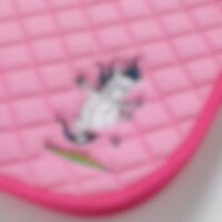 Quiltet underlag i kraftig bomuldstwill. Kombinationsfyld i polyester og skumgummi, der hjælper underlaget med at holde faconen og virker let støddæmpende. Inderside i Coolmax funktionelt materiale transporterer fugt væk fra hesten. Broderet Mulle-motiv af Lena Furberg.