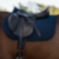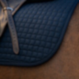 Småquiltet underlag i kraftig bomuldstwill, der holder vask efter vask. Glat, blød inderside af bomuld, så håret ikke sætter sig fast. 550 g polyfilt + 0,8 cm skumpolstring, robust nok til at holde formen, mens den ånder og afgiver overskydende varme fra hesten. Fremragende at brodere på.