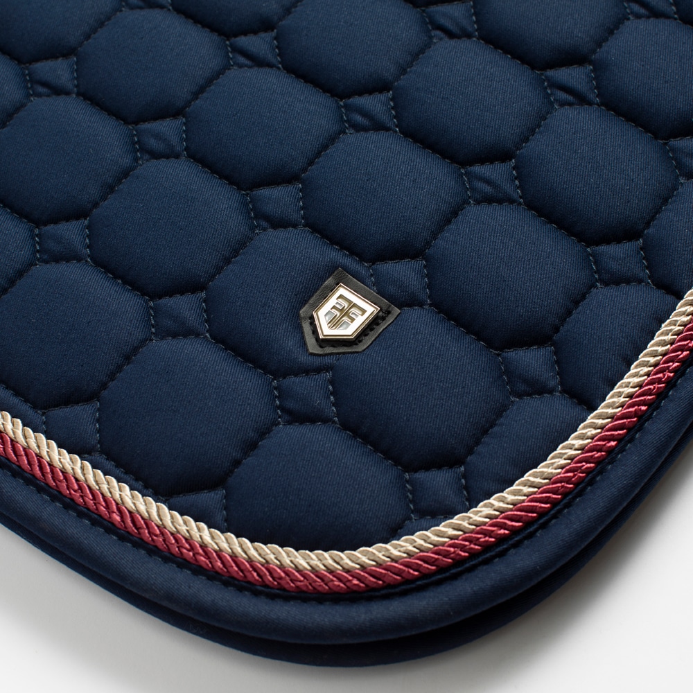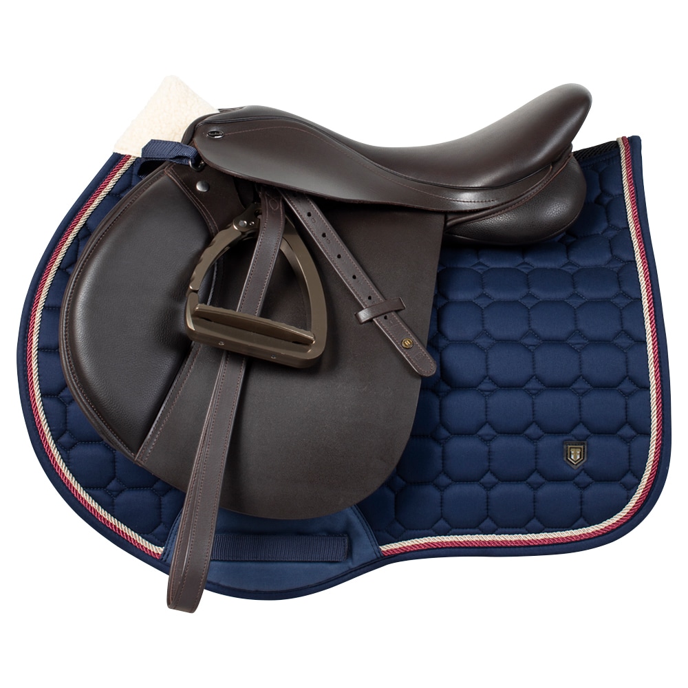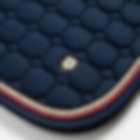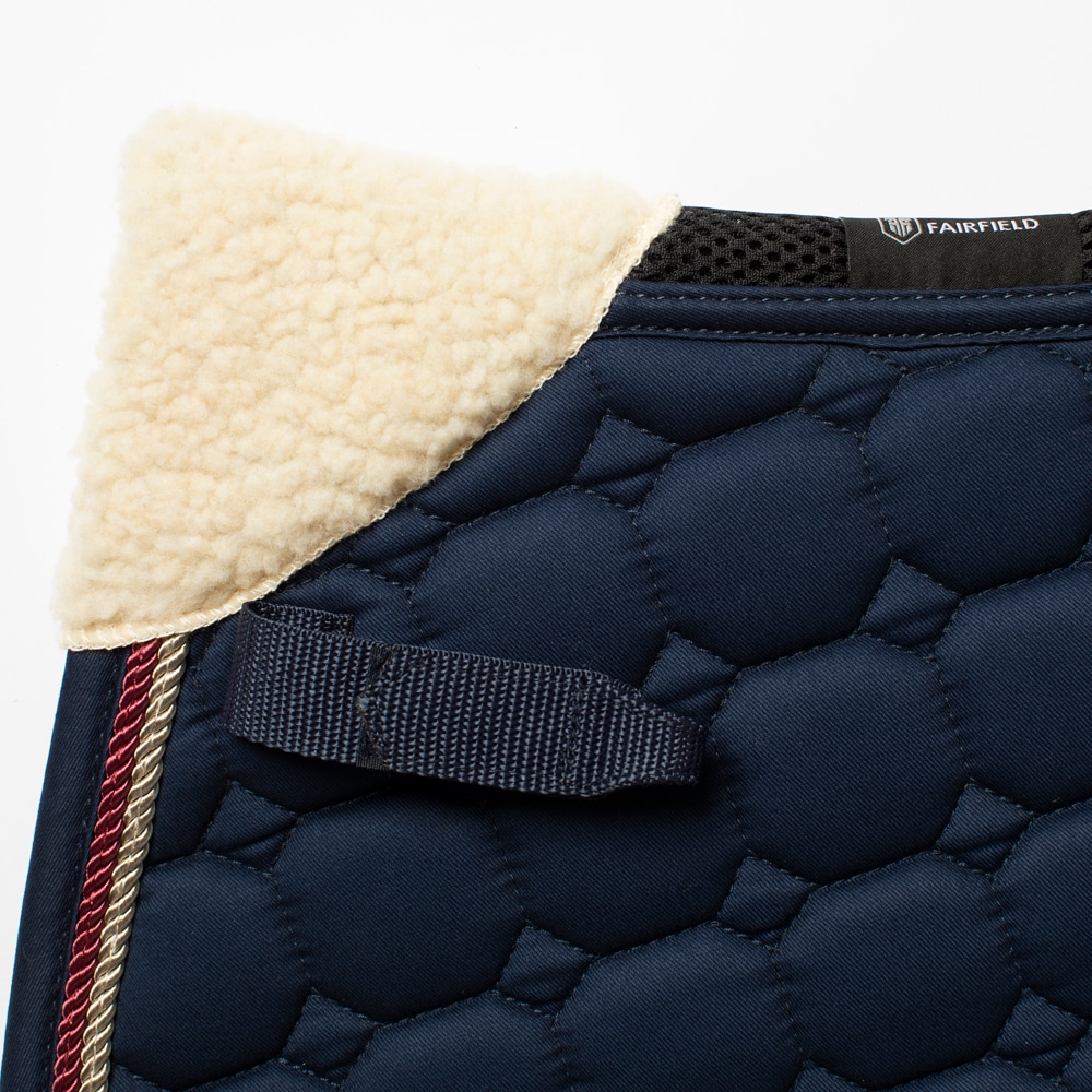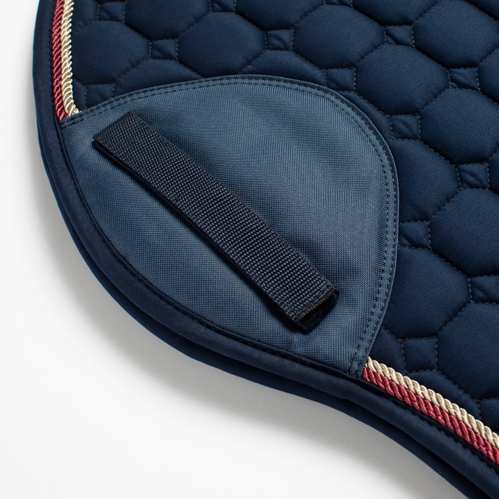 Quiltet underlag med slidstærkt bomuldstwill yderst. Stærk kombinationspolstring i 300 g polyfill + 1 cm skum giver et robust underlag, der holder formen og bliver på plads. Underside i funktionsmateriale af 100 % polyester, som hjælper med at transportere fugt væk fra hesten. Teddyfor i nakken modvirker slidmærker, og 3D mesh-panelet langs rygsøjlen giver god ventilation. Ekstra forstærkning ved sadelgjorden giver øget slidstyrke, og korte stropper til fastgørelse til sadlens D-ring gør, at underlaget passer til de fleste sadler.