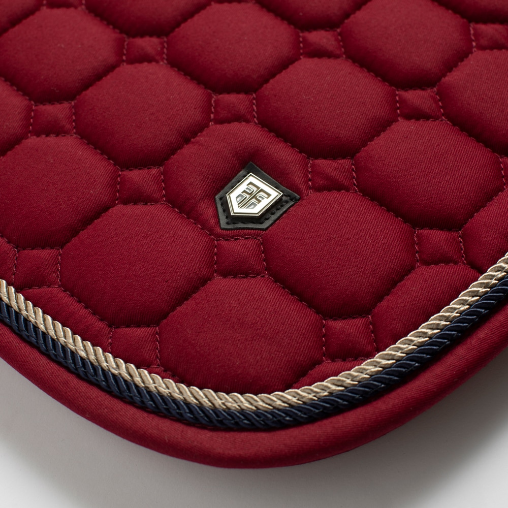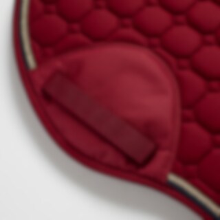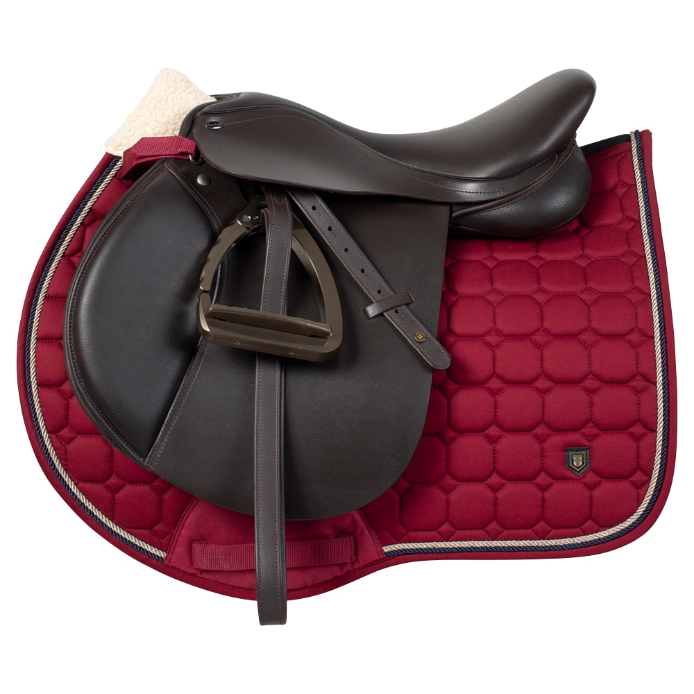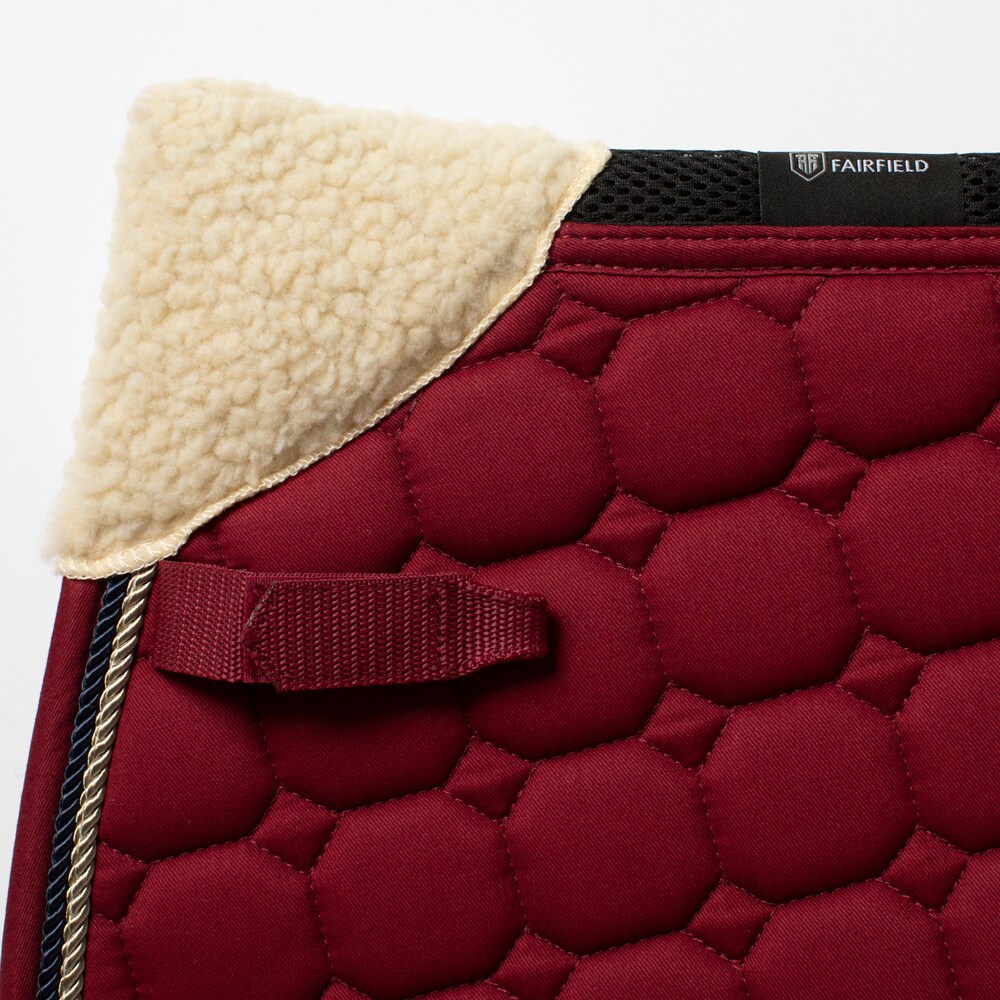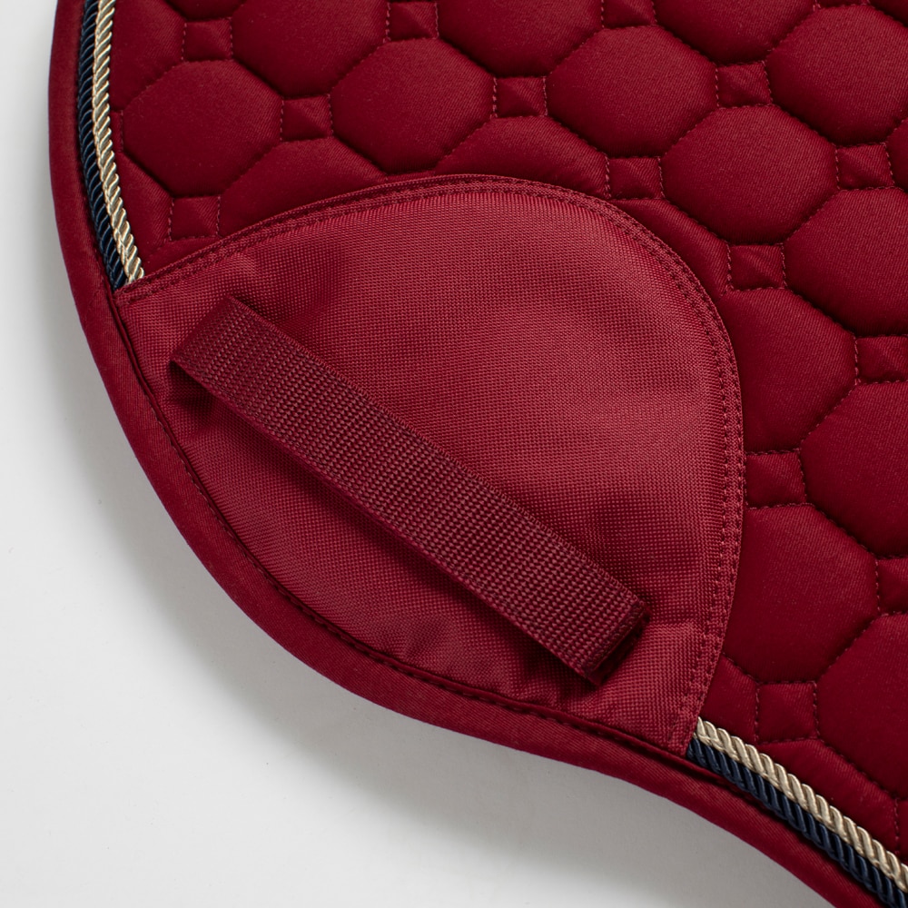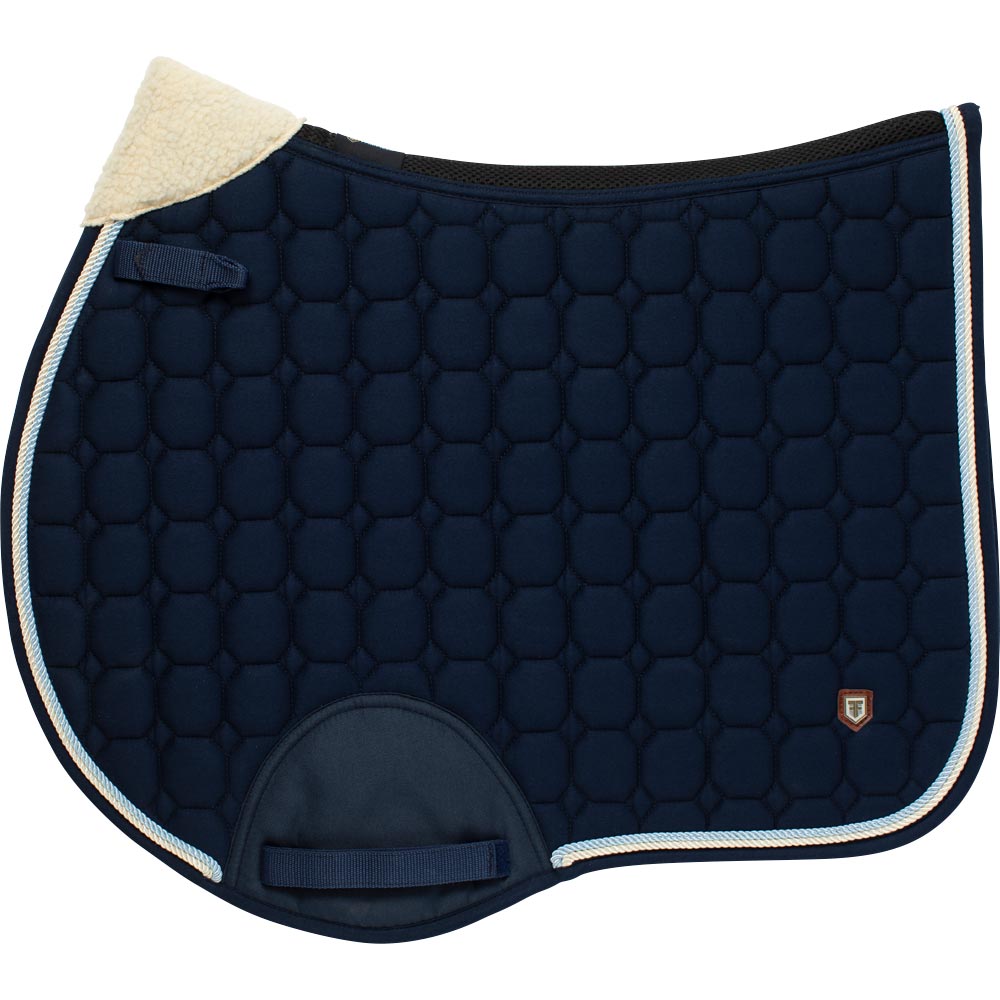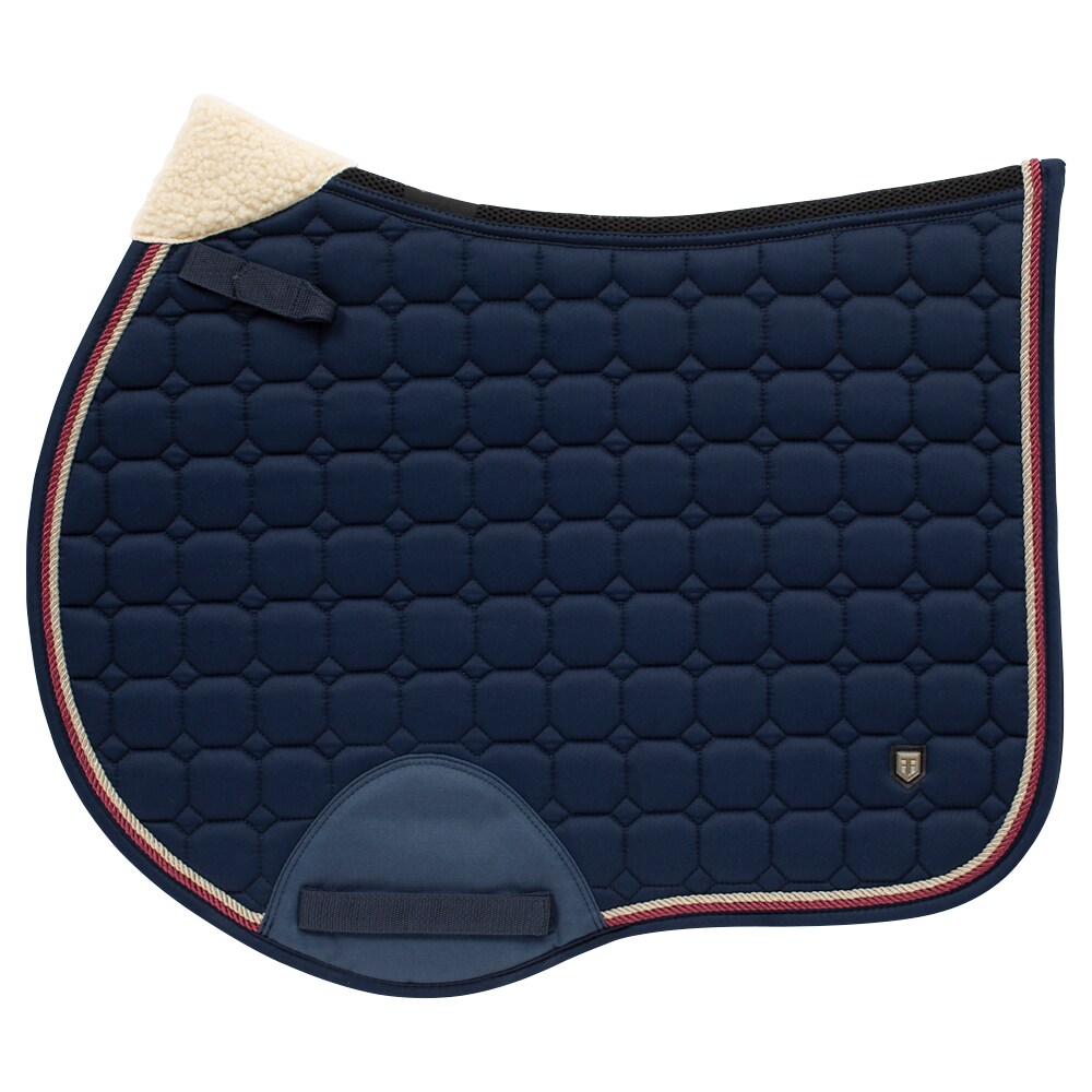 Quiltet underlag med slidstærkt bomuldstwill yderst. Stærk kombinationspolstring i 300 g polyfill + 1 cm skum giver et robust underlag, der holder formen og bliver på plads. Underside i funktionsmateriale af 100 % polyester, som hjælper med at transportere fugt væk fra hesten. Teddyfor i nakken modvirker slidmærker, og 3D mesh-panelet langs rygsøjlen giver god ventilation. Ekstra forstærkning ved sadelgjorden giver øget slidstyrke, og korte stropper til fastgørelse til sadlens D-ring gør, at underlaget passer til de fleste sadler.