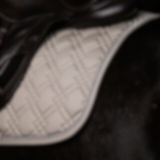 Eksklusivt underlag med yderside i 100 % bomuld, kombinationspolstring i 300 g polyester + 1 cm skum, som holder formen og virker let støddæmpende. Indvendigt i 100 % polyester hjælper coolmax med at transportere fugt væk fra hesten, så den forbliver behagelig under ridesessionen. Dekoreret med en række sten og snoet pipe i polyesterlurex.