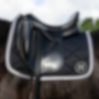 Schabrak med klassisk ternet quilt i glat og smidig nylonspandex, der giver en pletafvisende overflade. Holder farve og form vask efter vask. Kraftig kombinationspolstring i 500 g polyesterfyld og 0,8 mm skum virker støddæmpende og hjælper schabrakket med at holde formen. En vaffelvævet bomuldsforing skaber en luftspalte, så sveden tørrer hurtigere. Bredt kantbånd i mat satin. JH-logo. Ikke egnet til broderi.