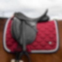Quiltet underlag med yderside i slidstærkt polyester/bomuldstwill. Stærk kombinationspolstring i 300 g polyfill + 1 cm skum giver et robust underlag, der holder formen og bliver på plads. Underside i funktionsmateriale af 100 % polyester, som hjælper med at transportere fugt væk fra hesten. Teddyfor i nakken modvirker slidmærker, og 3D mesh-panelet langs rygsøjlen giver øget ventilation. Ekstra forstærkning ved sadelgjorden giver øget slidstyrke, og korte stropper til fastgørelse til sadlens D-ring gør, at underlaget passer til de fleste sadler. Dekoreret med to silkepipes og et metallogo.