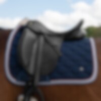 Quiltet underlag med yderside i slidstærkt polyester/bomuldstwill. Stærk kombinationspolstring i 300 g polyfill + 1 cm skum giver et robust underlag, der holder formen og bliver på plads. Underside i funktionsmateriale af 100 % polyester, som hjælper med at transportere fugt væk fra hesten. Teddyfor i nakken modvirker slidmærker, og 3D mesh-panelet langs rygsøjlen giver øget ventilation. Ekstra forstærkning ved sadelgjorden giver øget slidstyrke, og korte stropper til fastgørelse til sadlens D-ring gør, at underlaget passer til de fleste sadler. Dekoreret med to silkepipes og et metallogo.