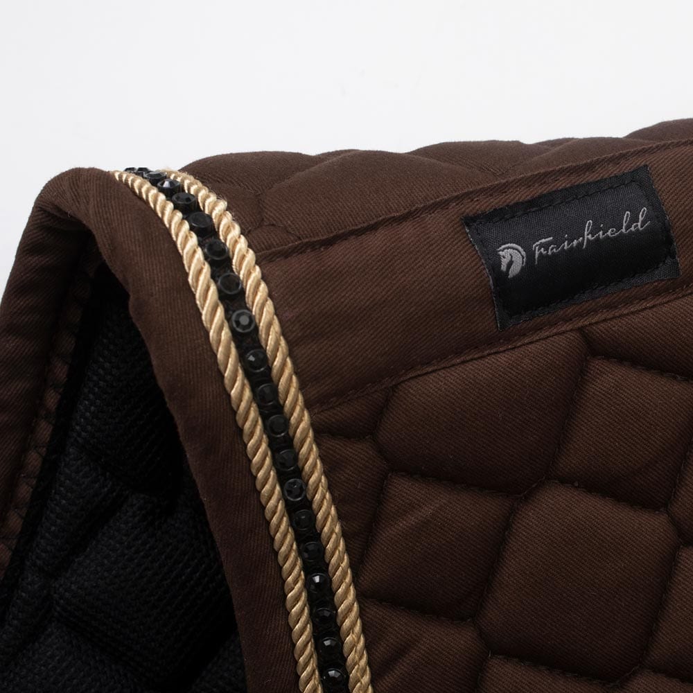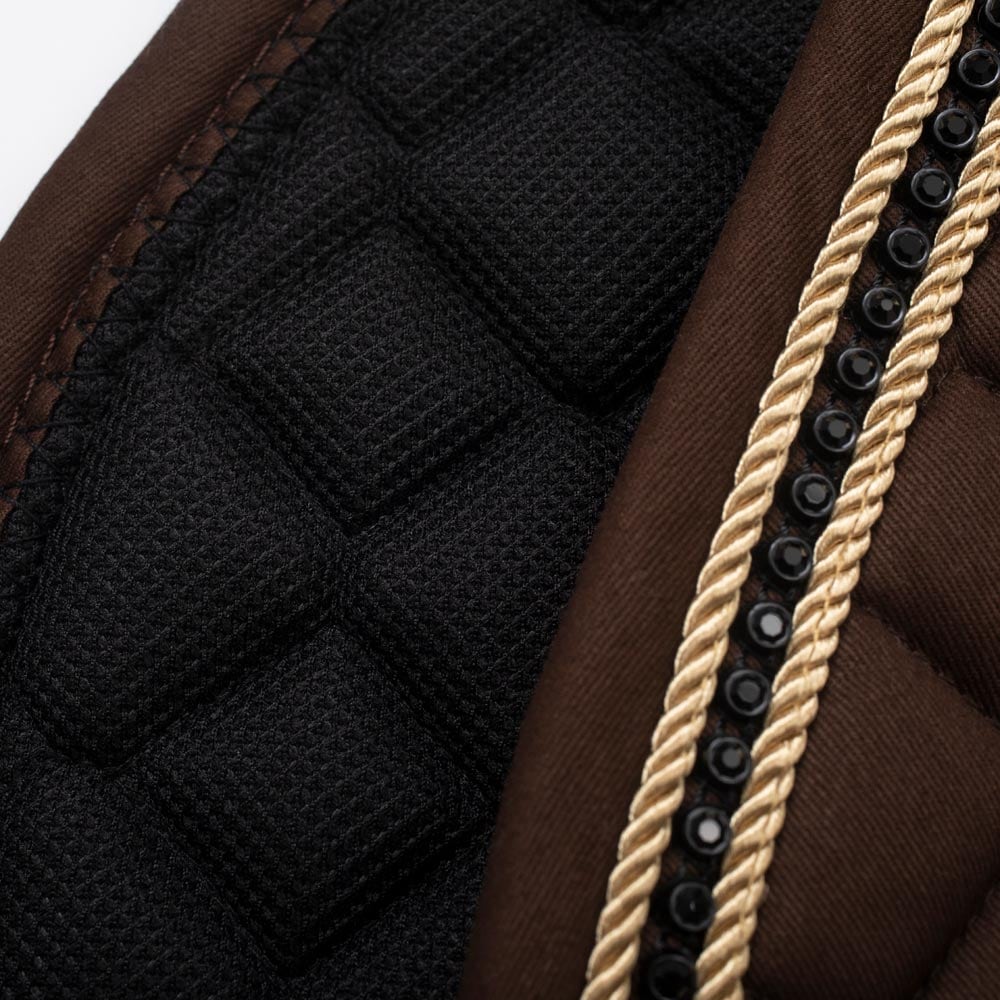 Quiltet bomuldsunderlag med inderside i Coolmax funktionsmateriale, som hjælper med at transportere fugten væk fra huden. Kombinationsfyld som sikrer, at underlaget holder faconen. Dekorative sten og silkepiping.